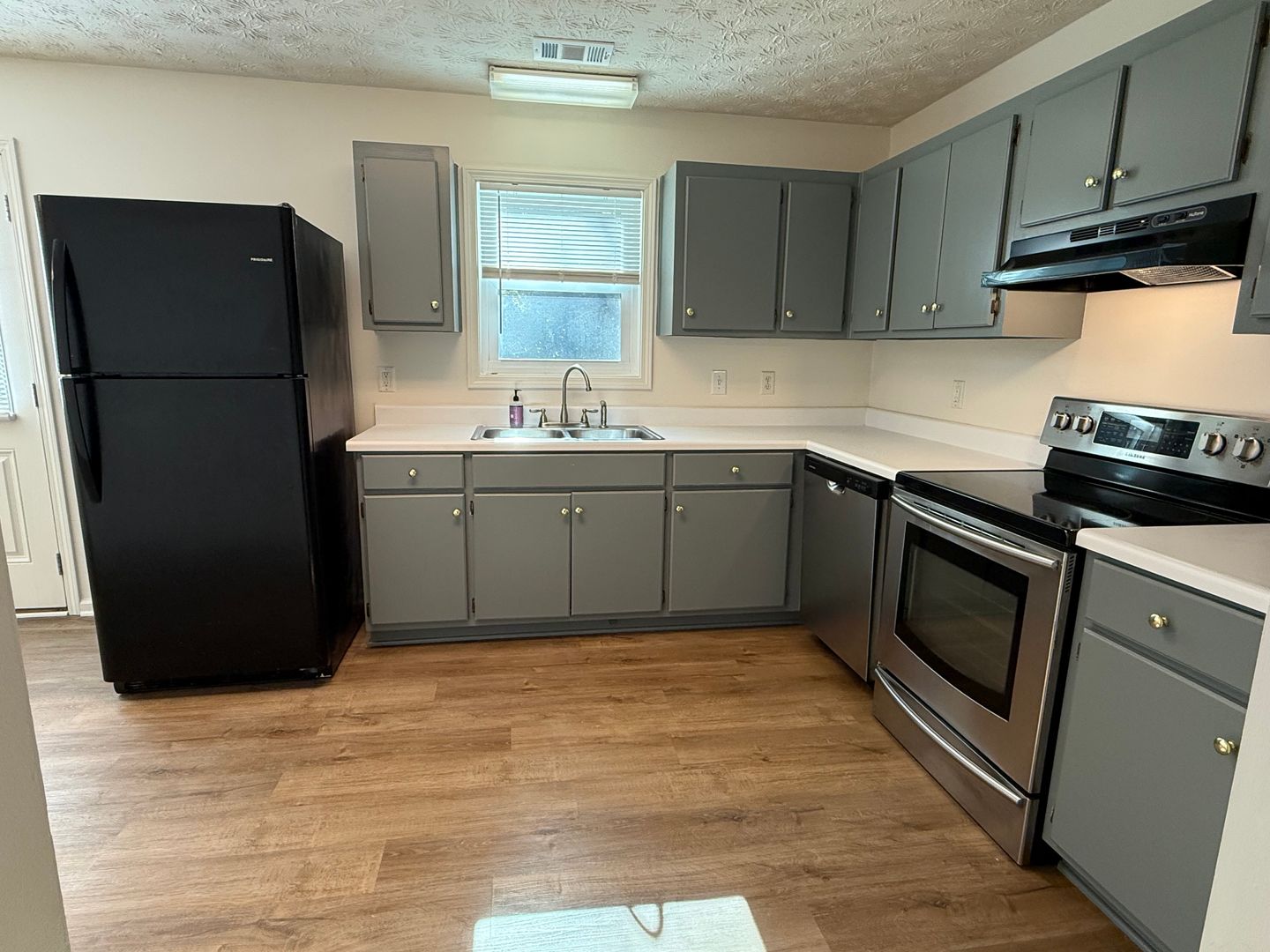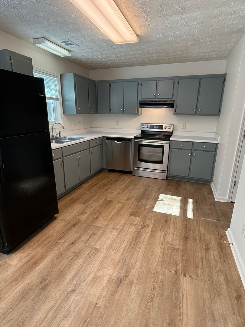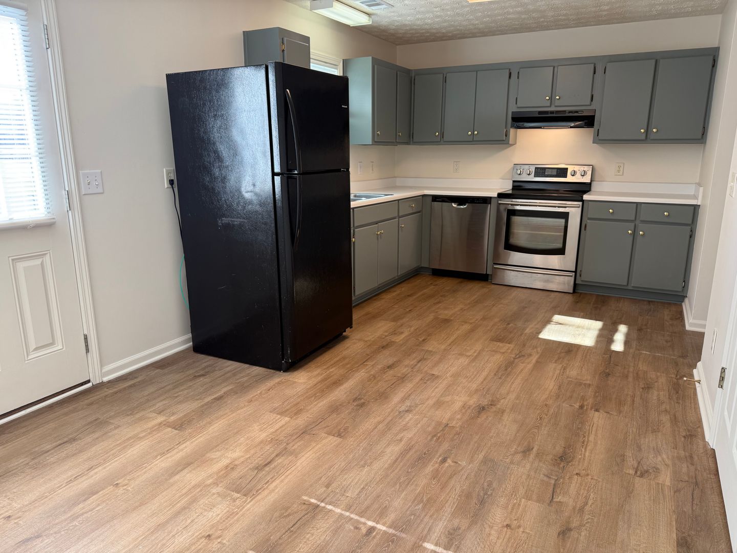 Newly renovated, two story townhome duplex, all brick exterior, 3 bedrooms, 1 full bath and 1 half bath. This townhome is total electric with central heat and air, and includes use of a stove, refrigerator and dishwasher. There is a pantry and large laundry closet off of the kitchen that has washer dryer connections only. All bedrooms and the full bathroom are upstairs, and the half bath is on the main level. Fresh paint and new laminate flooring thruout except the stairs are carpeted. Nice townhome with some extra touches.