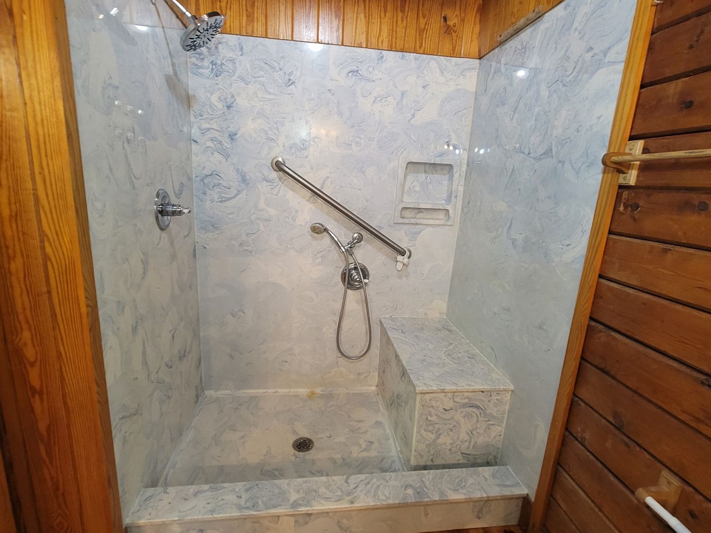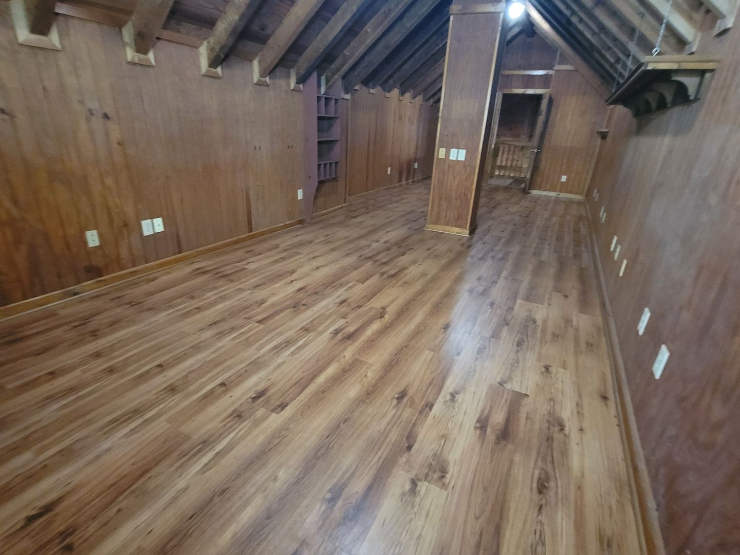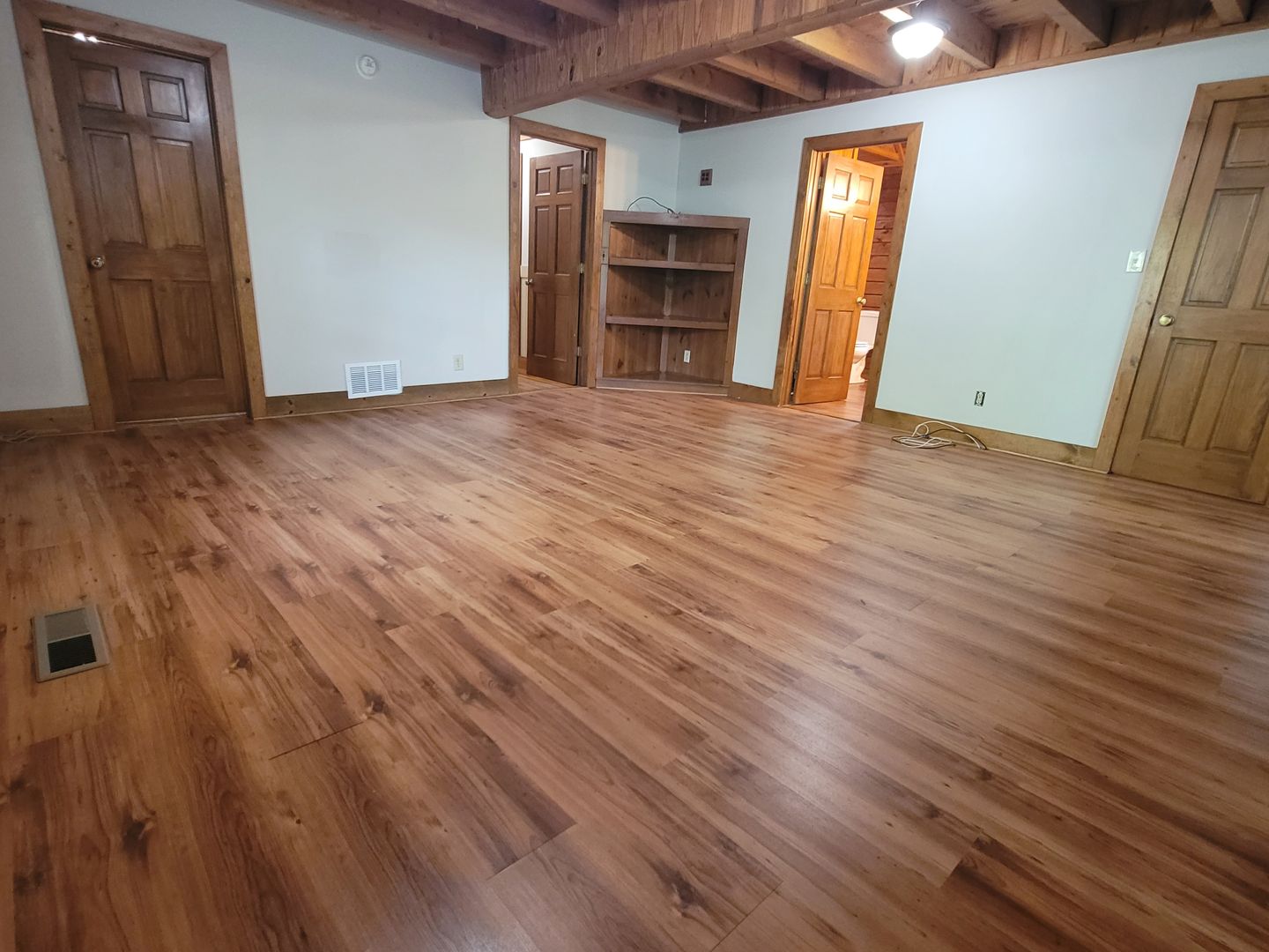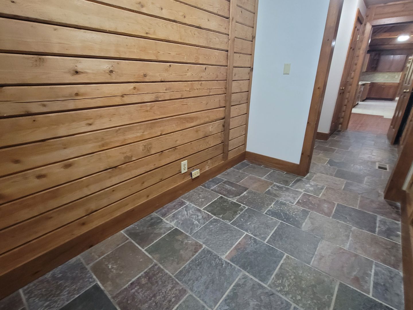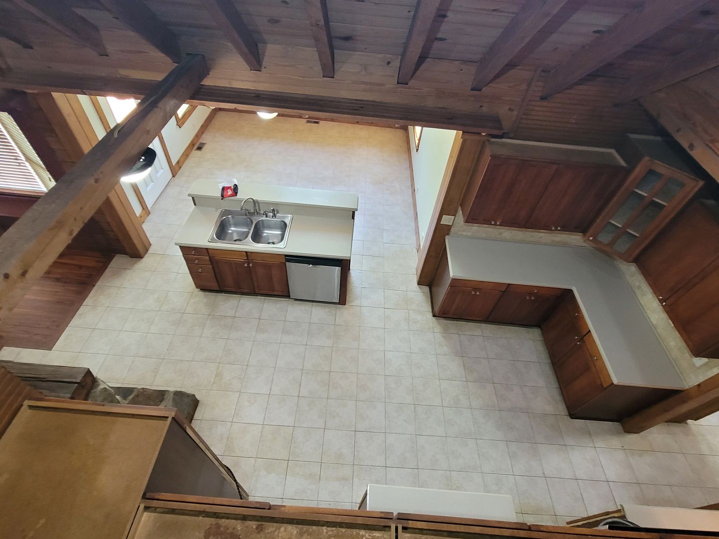 4 bedrooms, 2 bath cabin style home with private, wooded setting and views surrounding this property. Hardwood flooring throughout with most interior walls being made from log or wood paneling giving it a rustic, cabin feel. Everything is on the main level, except there is a 4th bedroom on the upstairs level. The 4th bedroom (upstairs) is extra long, having room for it's own den area.