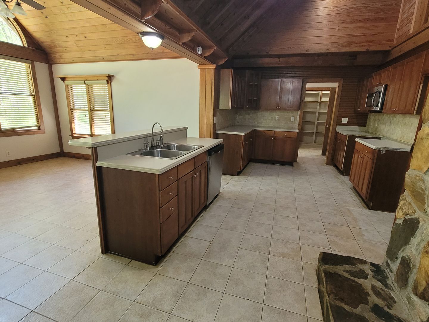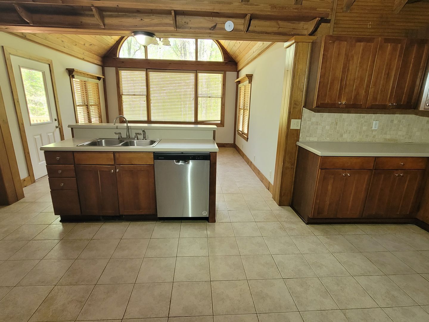 The kitchen is open and on either side, there is both an eating area and a separate dining room overlooking the deck and backyard areas. Only a dishwasher and above the range microwave are provided for tenant’s use.