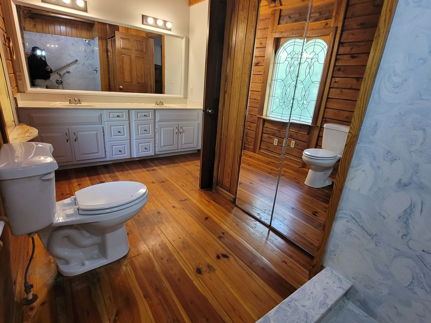 Ultimate privacy in this rural but convenient, unique property. You'll feel like you're on vacation in this rustic, secluded log cabin feel home. Surrounded by woods, you'll be living among the trees. (watch video to see just how long the driveway is). Recently renovated with tons of space and lots of storage.