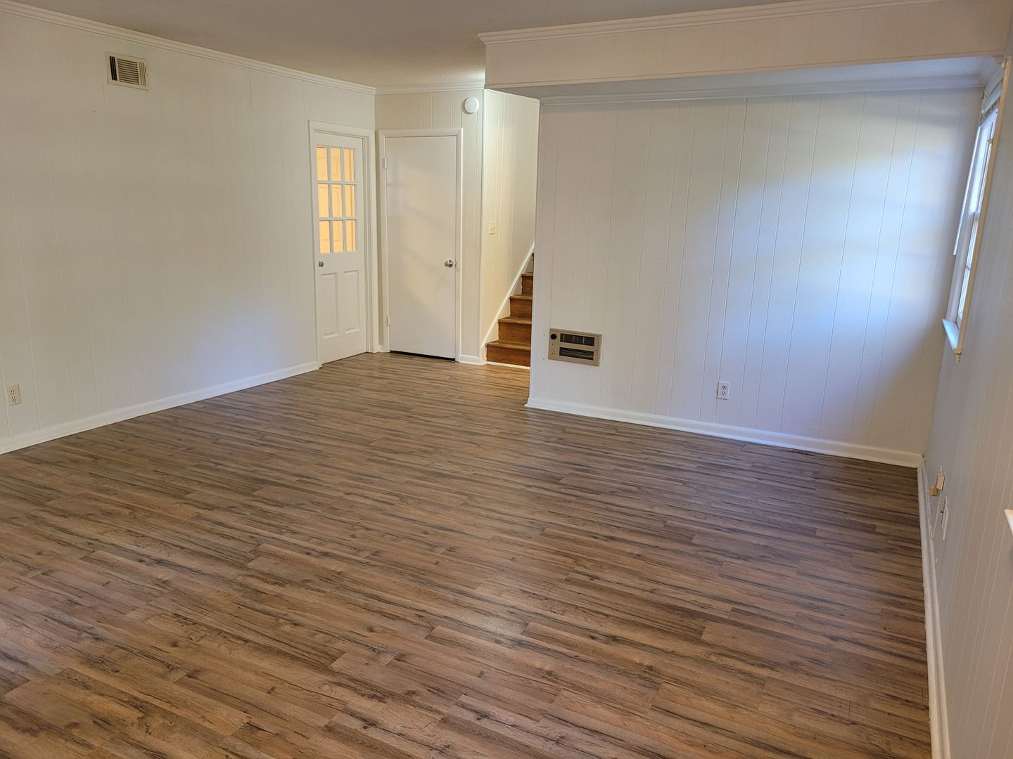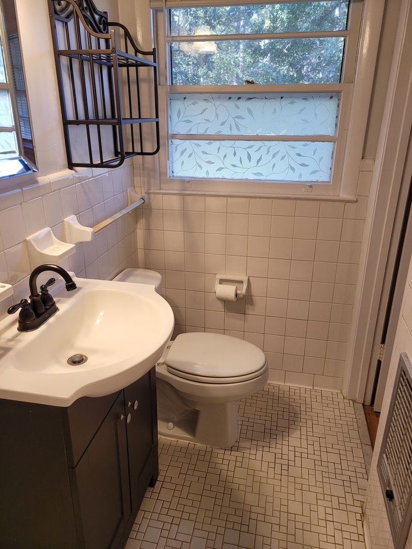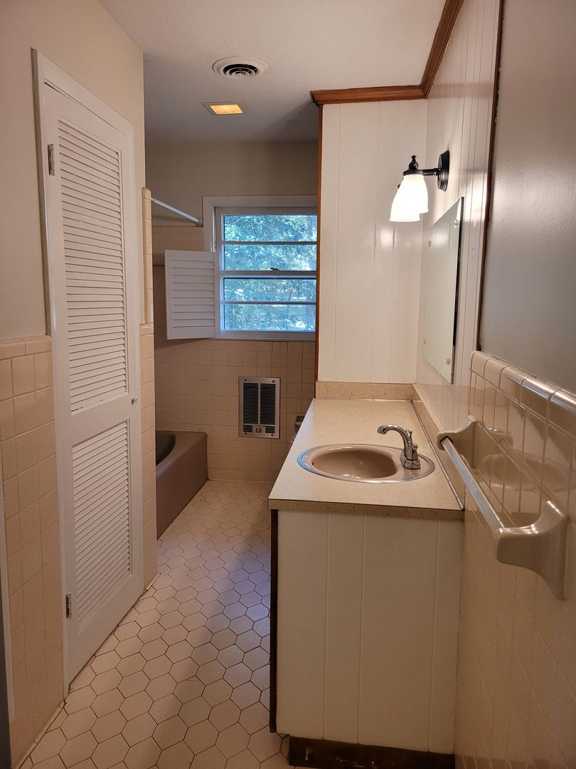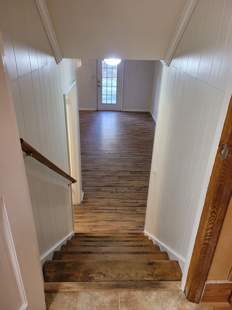 All brick, split level home on private parcel. 3 bedrooms, 3 bathrooms, bonus room, and an enclosed single car garage. The attached/enclosed single car garage is not heated nor cooled, and can NOT be used as a bedroom, NOR parking, it can strictly be used as a playroom, storage, etc. (see below for further info). 3 bedroom and 2 bathrooms are on the upstairs level. A bonus room, full bathroom with laundry hookups are on the lower level. The main level has the living room with fireplace, eating area and kitchen. The kitchen includes use of a refrigerator, oven, cook top and dishwasher. This home is total electric with central heat and air. There are a few older electric baseboard heaters, but the house does have central air. The house has wood and laminate flooring thruout, except the master bathroom and 2nd bathroom on the upstairs level both have vintage tile. There is a screened in porch with a ceiling fan off of the eating area, next to the kitchen.